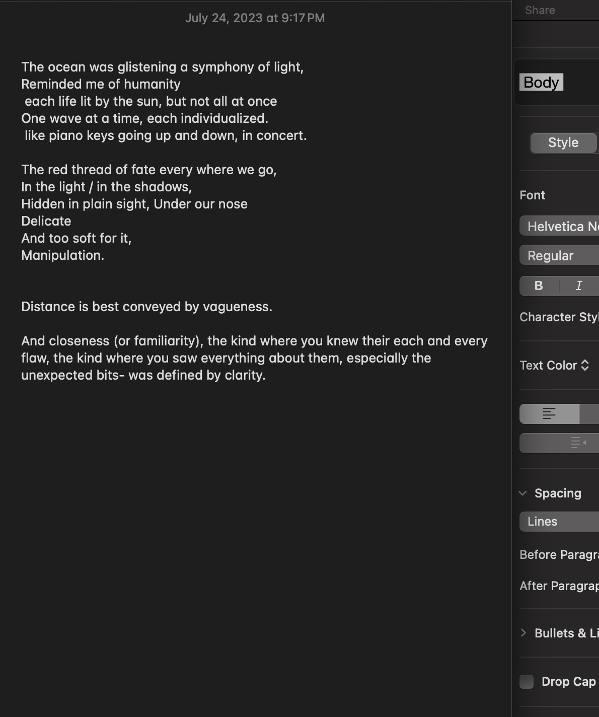 Ultimately, my work is a psychological portrait of both the individual and the collective experience, conveying an inner dialogue through visual storytelling. By revealing what lies beneath the surface, I aim to foster a deeper understanding of the human condition — a balance between the seen and unseen, the conscious and subconscious, as well attachment and nonattachment, like yin and yang, opposing forces continually shape and transform one another.